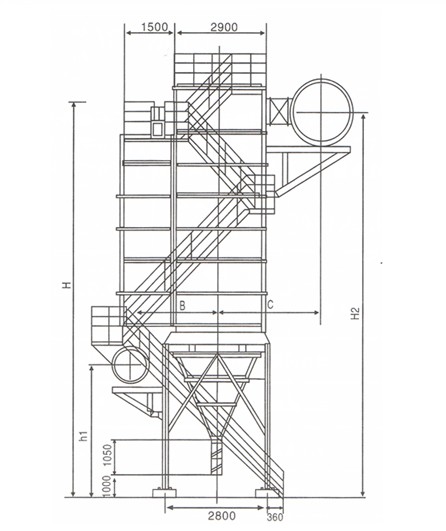 LCM-D/G型系列长袋离线脉冲除尘器/长袋除尘器外形尺寸: